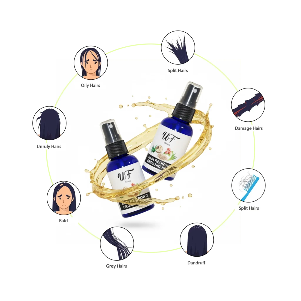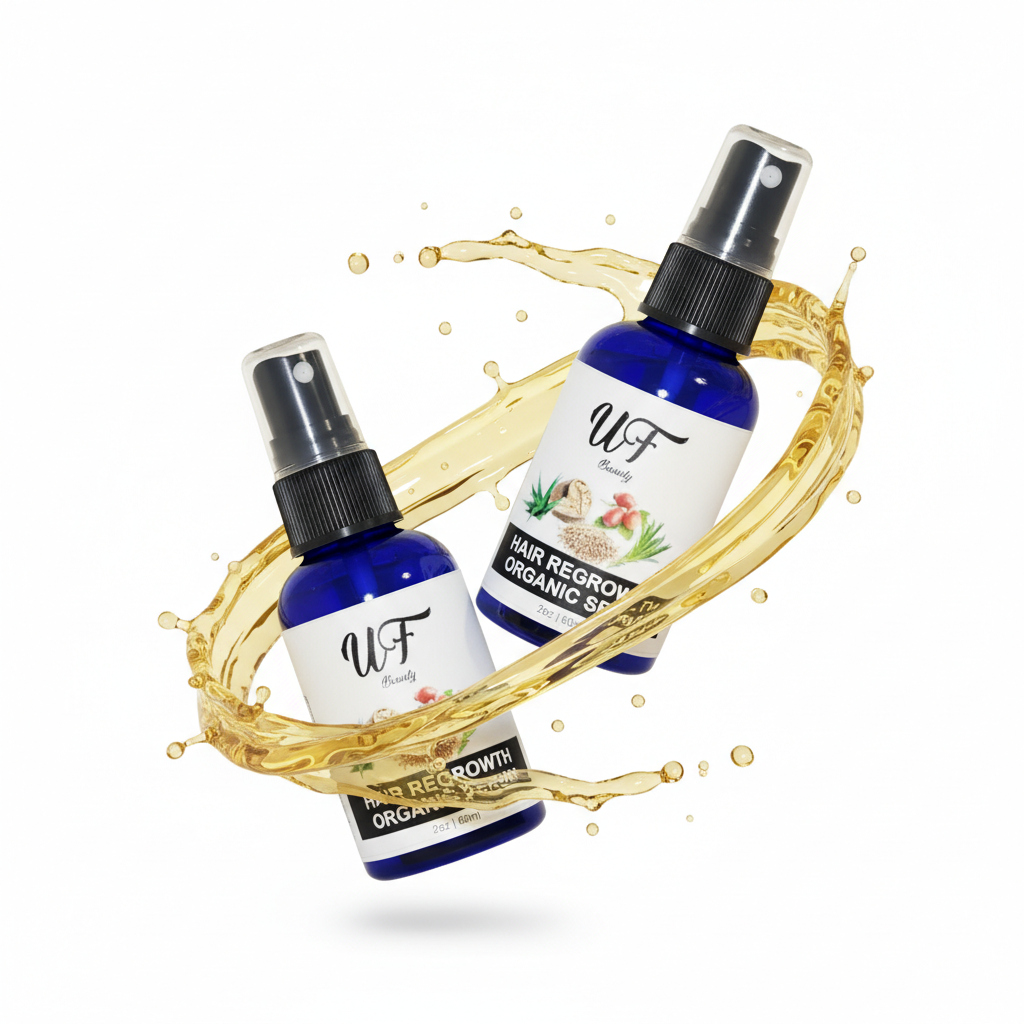 UF Beauty Hair Regrowth Organic Serum is a lightweight, plant-powered formula designed to nourish the scalp and support thicker, healthier-looking hair. Fast-absorbing and easy to apply, it helps strengthen strands while promoting a fuller appearance.
